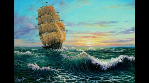 Как легко и просто написать свою красочную картину"Корабль в море"маслом!часть#2