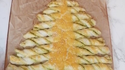 Ёлочка из слоеного теста с Песто.
