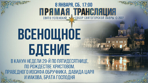Прямая трансляция. Всенощное бдение 08.01.2022 г.