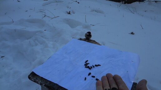 Птицы на ладони в морозный день.