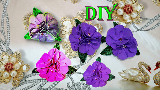 Интересный цветок заколка из 6 кружков фоамирана. DIY
