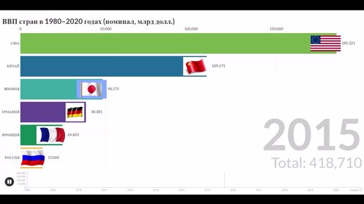 ВВП стран в 1980–2020 годах (номинал, млрд долл.)