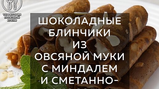 Шоколадные блинчики из овсяной муки с миндалем и сметанно-кокосовым кремом