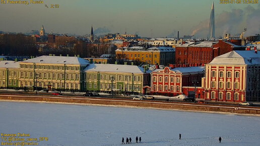 Чудо света - настоящий Санкт-Петербург в прямом эфире. Зимняя сказка, панорама реки Невы, достопримечательности.