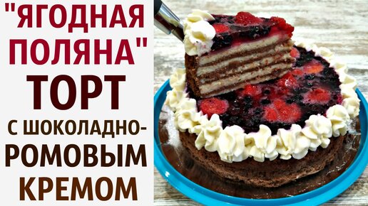 ТОРТ 🍓"ЯГОДНАЯ ПОЛЯНА" с ШОКОЛАДНО РОМОВЫМ КРЕМОМ и ЖЕЛЕ