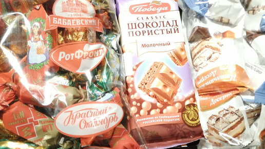 Купила в Светофоре конфеты фабрики Рот Фронт, Красный Октябрь и Бабаевский, хороший молочный пористый шоколад фабрики Победа.
