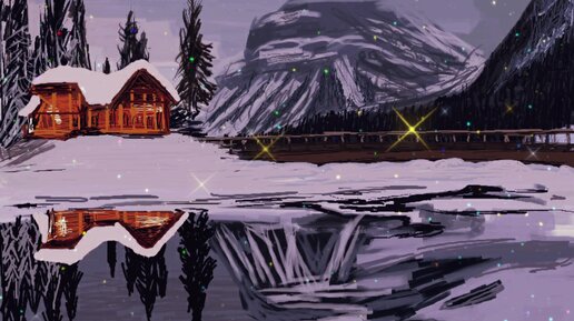 Рисую домик у озера в горах. Простой и быстрый пейзаж на компьютере