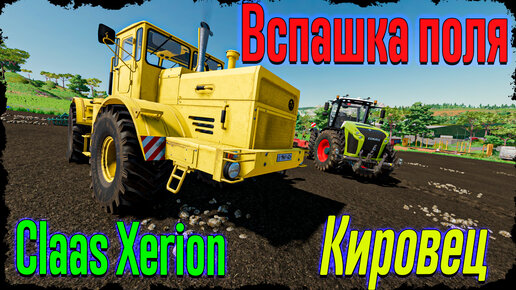 Вспашка поля двумя тракторами Кировец К-700А и Claas Xerion 4000