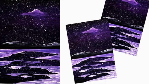Нарисуем пейзаж с детьми. Ночь на северном полюсе. Правополушарное рисование.