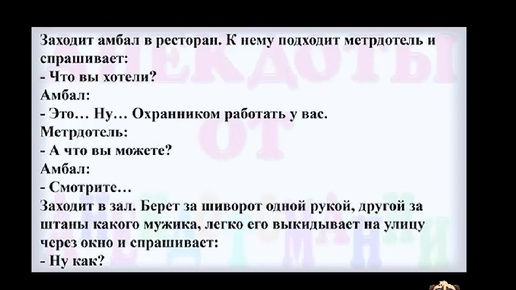 - В вашем селе какие-то развлечения есть?- Конечно, можно залезть кому-то в сад.- И в чем тут кайф?...Анекдот