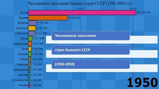 Динамика численности населения бывших стран СССР (1950-2050г.г.)