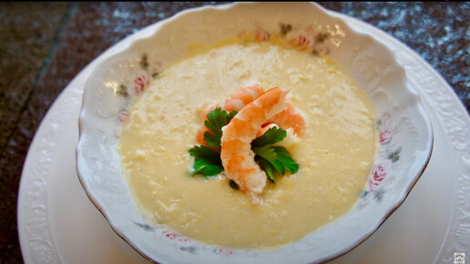 Кукурузный крем-суп с креветками
