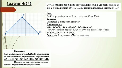 Задача №249 Атанасян. Геометрия 7 класс. Соотношение между сторонами и углами в треугольнике