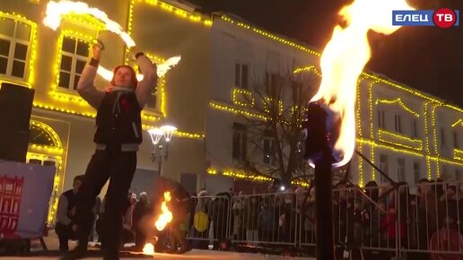 Огненное шоу на площади Ленина стало кульминацией новогодних праздников в Ельце