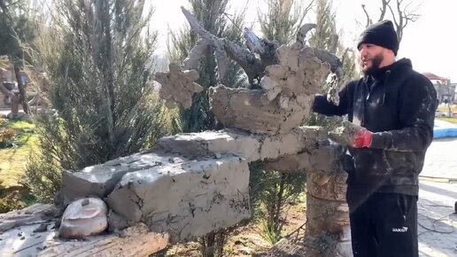 секрет приготовление Арт Бетона, мастер класс как сделать черновую обмазку каркаса цветочника бордюра ,от Эльдара Асанова