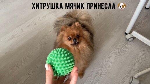 Померанский шпиц приносит мячик и не играет, лишь бы внимание к себе привлечь.