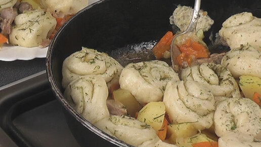 Нудли по-украински из пресного теста с гарниром из мяса индейки и картофеля
