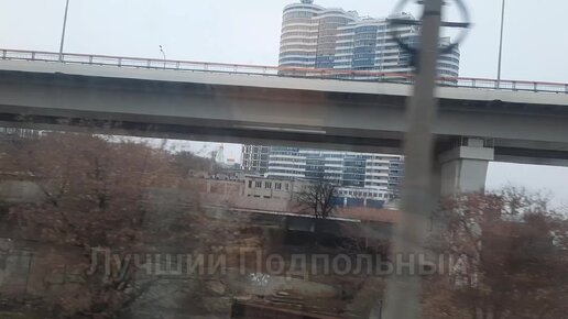 Вид с окна поезда выезд из города Ростов на Дону западный мост зимой днём станция Ростов-Берег