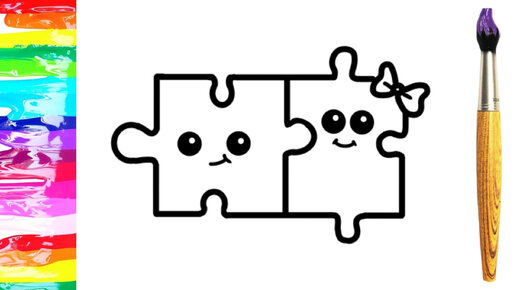 Как нарисовать Милый Пазл. Мультик раскраска для детей. Учимся рисовать простые рисунки для детей.