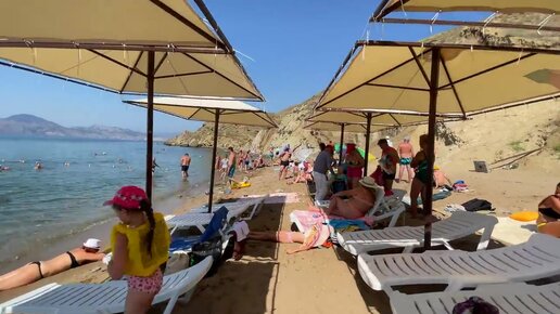 Люди стоя загорают на пляжах. Орджоникидзе. Крым