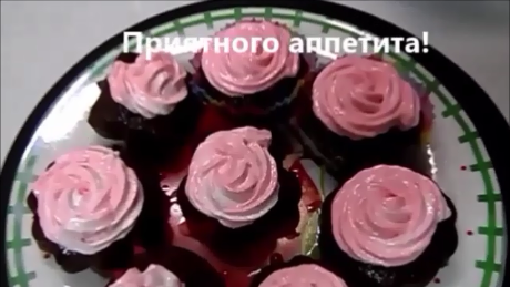 Шоколадные капкейки с творогом и малиной.