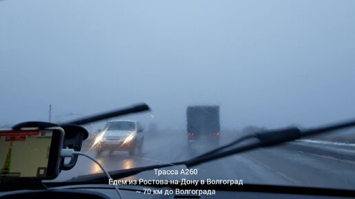 Трасса А260 из Ростова-на-Дону в Волгоград: туман, мокрый снег, плохая видимость