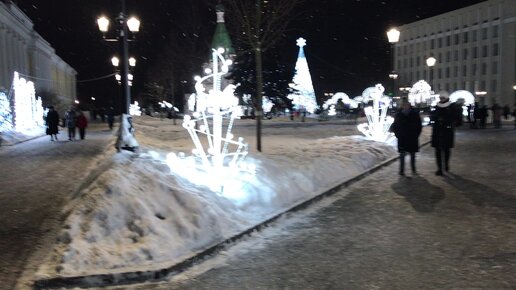 Михайло-Архангельский собор в Нижнем Новгороде. Елка и украшения вокруг