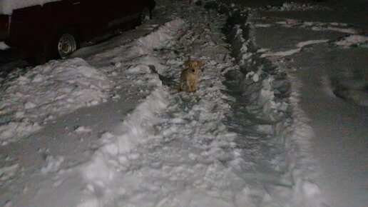 Вечерняя прогулка нашего щеночка. Любит гонять по снегу