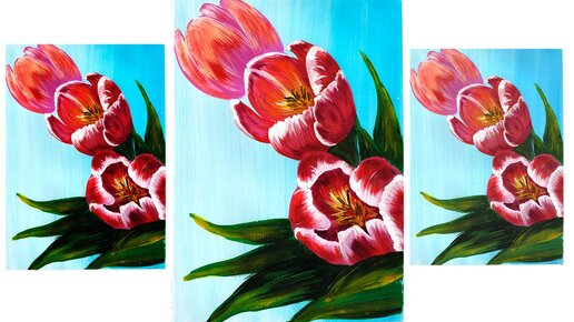 Интерьерная картина, тюльпаны. Рисуем открытку. Нарисуем цветы. Правополушарное рисование.
