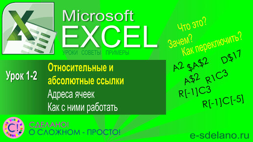 Excel. Урок 1-2. Что такое абсолютные и относительные ссылки ($A$2, D$4, R[-1]C[-3]) и как их использовать