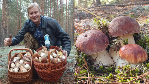 Хочешь берёзовые - хочешь сосновые . Белые грибы в сосновом бору.
