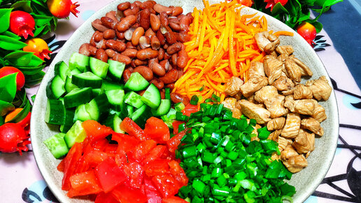 Очень вкусный салат из фасоли. Такой салат готовлю первый раз.