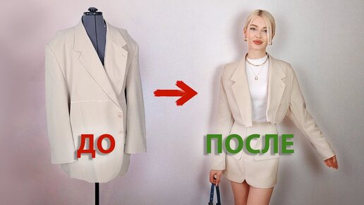 Модная переделка пиджака в укороченный пиджак и юбку