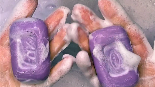 Асмр звуки// Выжимание губки // Пена от лавандовое мыло Факс