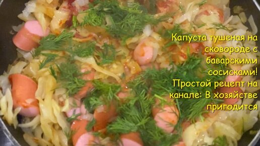 Капуста тушеная с баварскими сосисками! Всего три простых продукта на сковороде