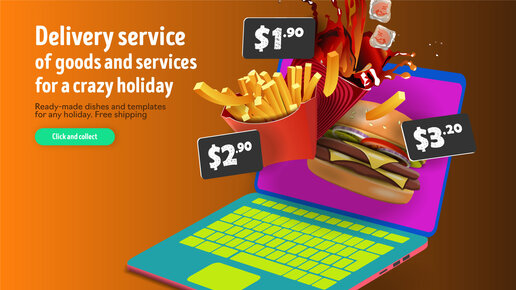 Вэб дизайн сайта ресторана фаст фуд, с анимированными элементами