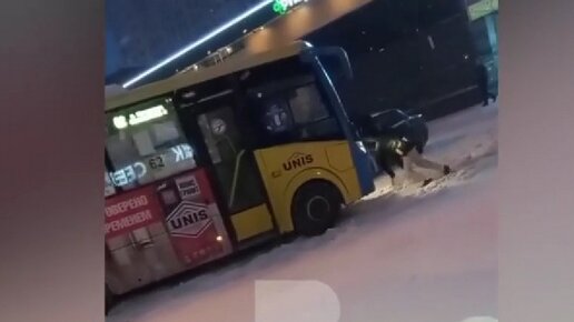 Видеофакт: В Рязани пассажиры выталкивали застрявший в снегу автобус