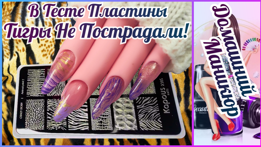 Первые дизайны с тигриным принтом на руке для маникюра. Стемпинг пластина Kapous№2385. Маникюр дома.