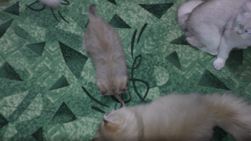 Котенок бегает за игрушкой