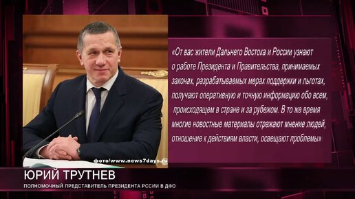 Юрий Трутнев поздравил дальневосточников с Днем российской печати