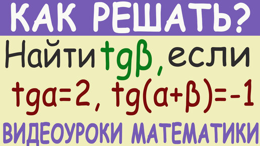 Как найти tg β, если tg α=2, tg (α+β)=-1. Простое решение. Тригонометрия 10 класс