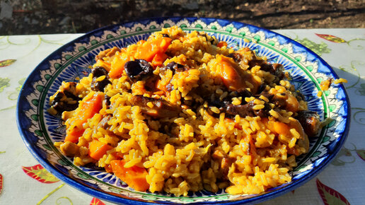 Вкусный сладкий плов в казане с сухофруктами и орехами