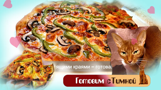 Тонкая пицца с моцареллой, шампиньонами и болгарским перцем