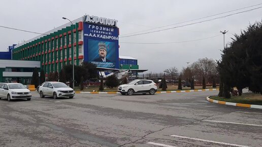 Обзор международного северного аэропорта в столице Чеченской республики городе Грозном зимой днём