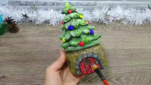 Как сделать ёлку из банки и папье-маше своими руками. DIY.