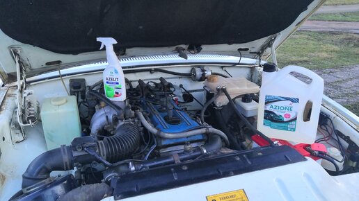 Авто шампунь или Азелит кто лучше отмоет масло. Попробовал отмыть под капотом.