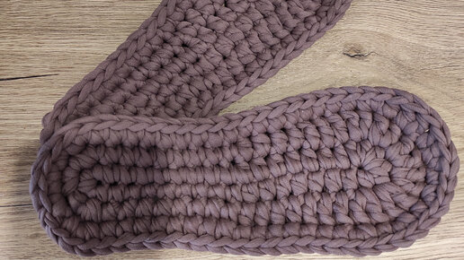 Как соединить крючком двойную подошву из трикотажной пряжи. Часть 3 Соединение вязаных деталей трикотажным швом.