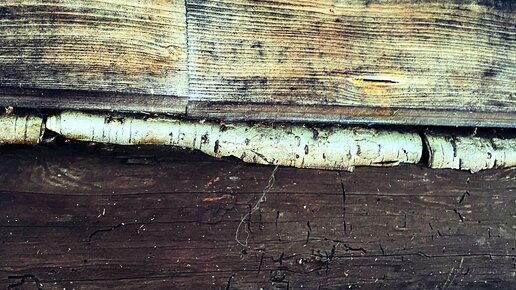 Старинная русская технология: береста под оконными рамами, в деревянном доме.