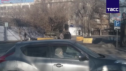 Блокпост около департамента полиции в Алма-Ате. задние протестующие штурмовали 27 раз