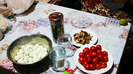 Перепелиные яйца и помидоры черри маринованные с грибами